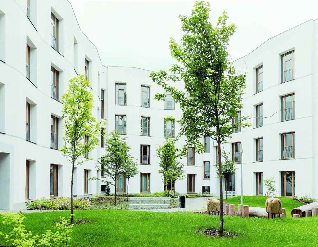 Xella’s BIM department not only develops structural designs for large‑format systems such as Silka Tempo and Ytong Panel, but also provides expert technical advice. The Solna 6 project proved especially challenging. Located next to the Baroque Carmelite monastery on St. Adalbert’s Hill, and an avenue of protected mature ash and oak trees, the complex had to comply with strict heritage conservation rules requiring traditional plaster finishes.